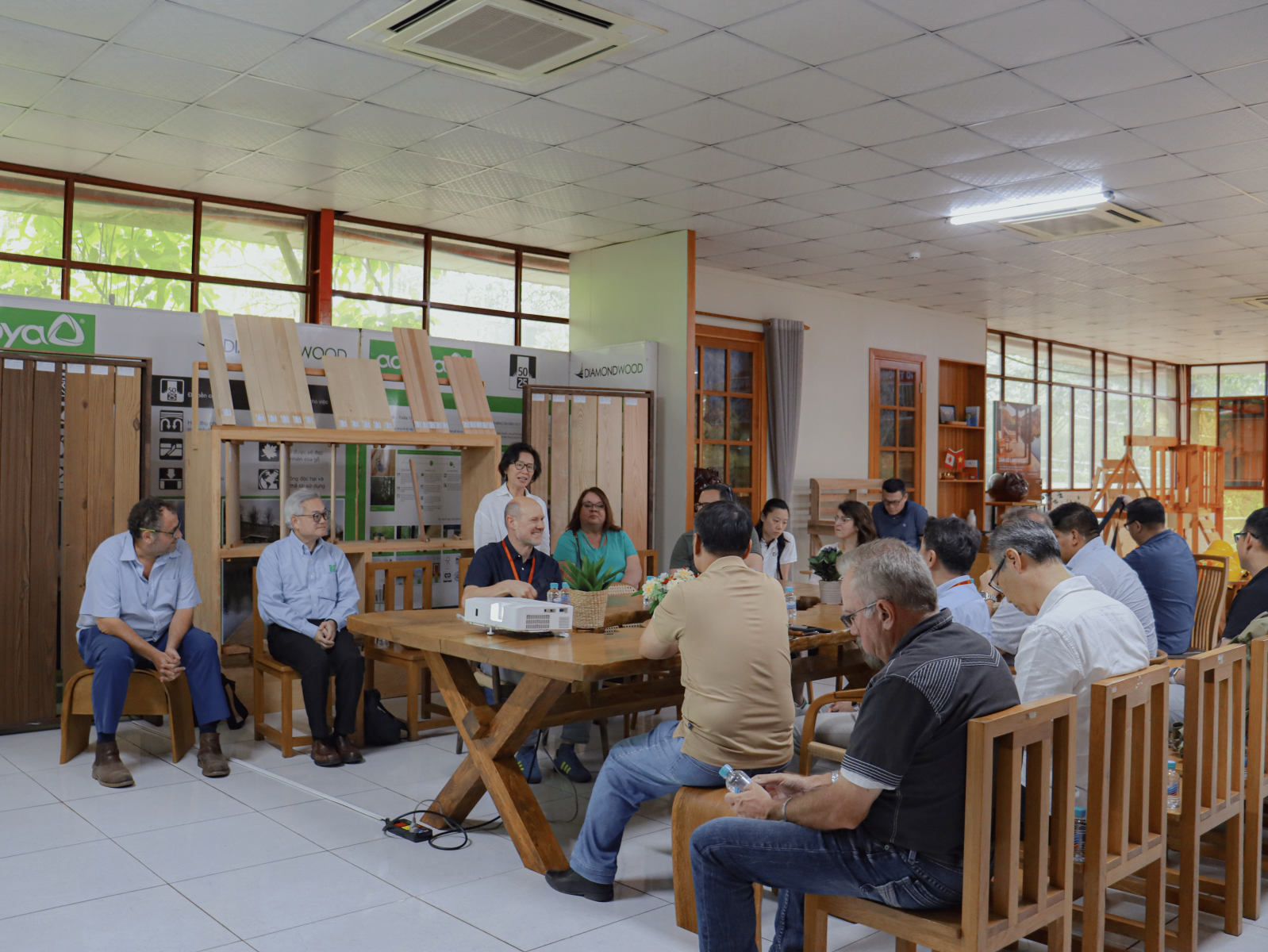 Bên cạnh hoạt động tham quan, buổi làm việc giữa Tavico và đoàn Softwood Export Council cũng tập trung vào việc trao đổi thông tin về xu hướng phát triển của ngành gỗ trên thế giới. Các nội dung trao đổi xoay quanh việc sử dụng gỗ mềm trong sản xuất nội thất, cũng như khả năng ứng dụng các giải pháp vật liệu gỗ trong lĩnh vực xây dựng hiện đại.